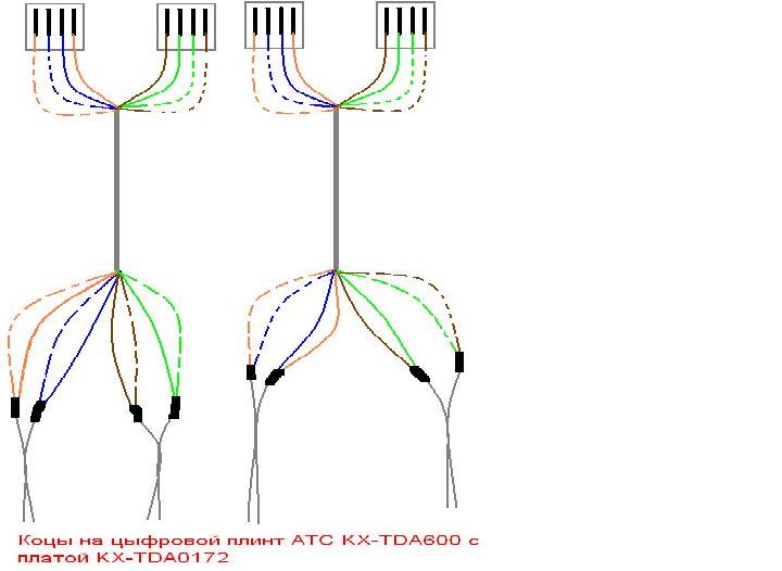 Eсть KX-TVM200 и KX-TDA600 с платой KX-TDA0172 как соединить их на физическом уровне от платы KX-TDA0172 идет разьем "амфинол" на крос там для каждого цифрового порта выделено по одной паре (цыфровые телефоны работают) в мануалах по подключению написано что подключение KX-TVM200 осуществляеться по четырех проводному кабелю а в разьеме "амфинол" всего 50 проводов как правельно подключить к 2 проводной плате АТC саму KX-TVM200 которая подключаеться по четырем проводам я тут примерно сделал набросок двух вариантов может он и не правильный